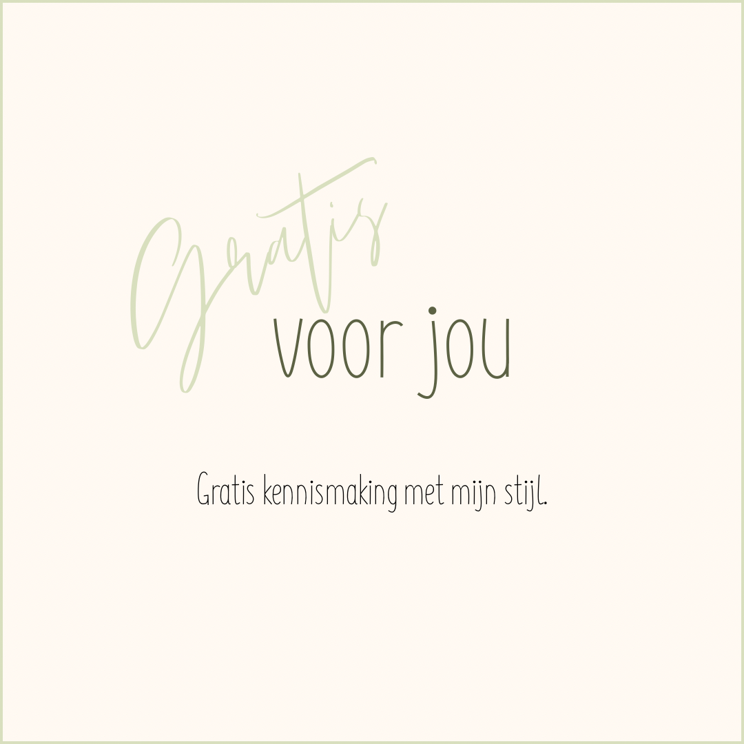 Probeer mijn stijl uit met een gratis pakket. Ideaal als kennismaking — gewoon even proberen, zonder verplichtingen.