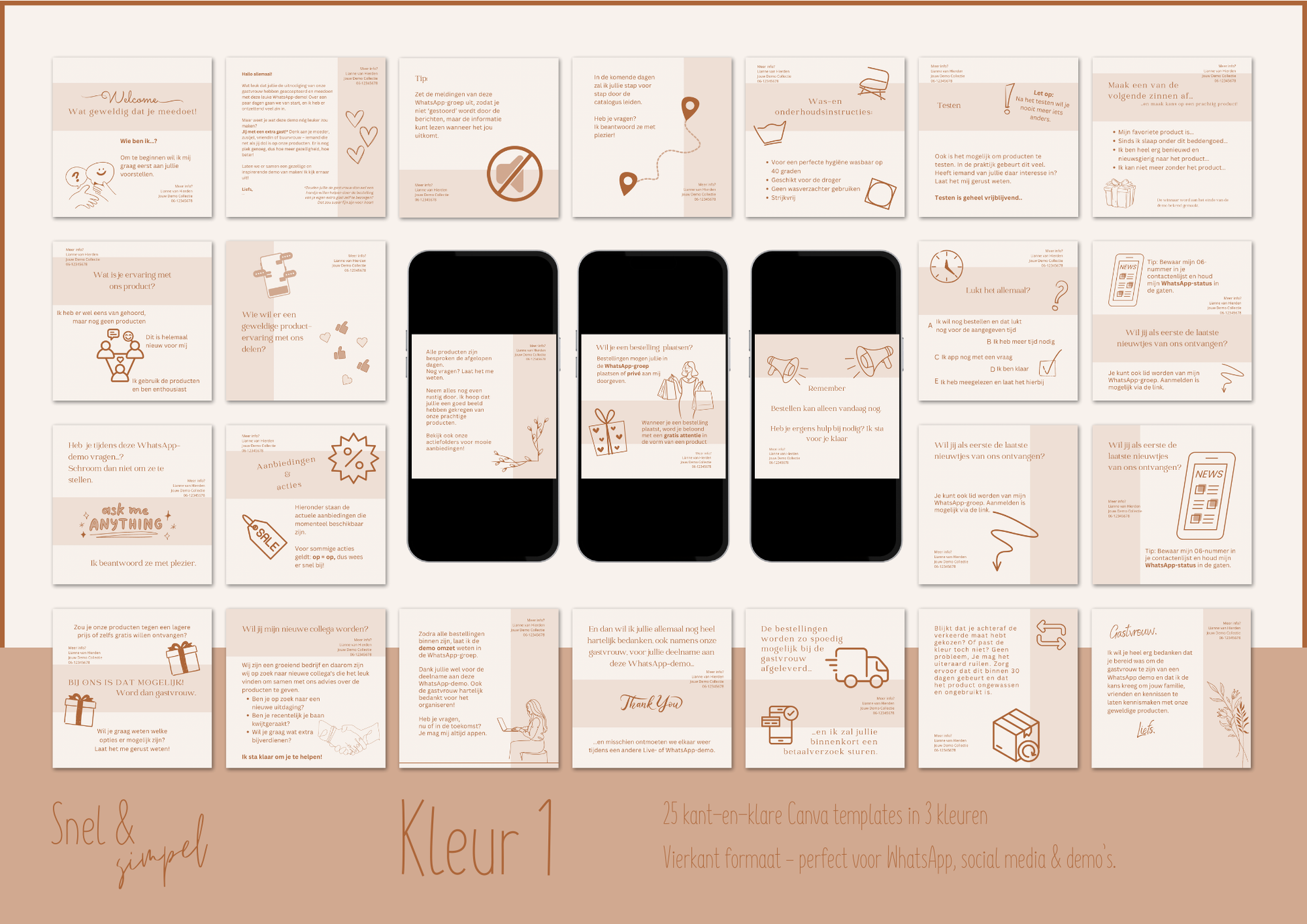 Gebruik deze templates als basis voor jouw WhatsApp-demo en vervang jouw teksten door deze afbeeldingen. Zo creëer je eenvoudig een professionele, consistente uitstraling – zonder dat je alles zelf hoeft te maken.