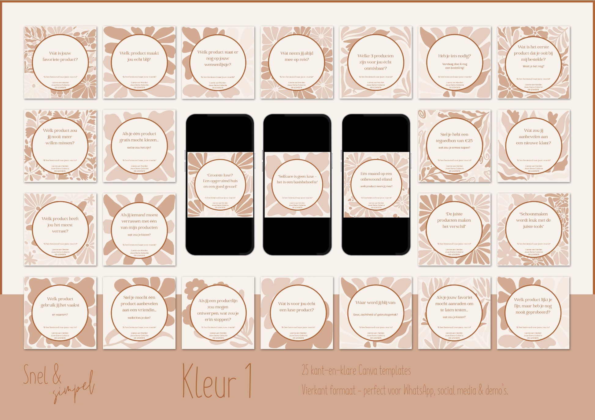 De Quotes & Vragen-serie helpt je om moeiteloos zichtbaar te blijven — ook wanneer je weinig tijd hebt. Gebruik de teksten in je WhatsApp-demo’s, op social media of in je status. Voor een extra reminder, een onverwachte reactie of gewoon om contact te houden.